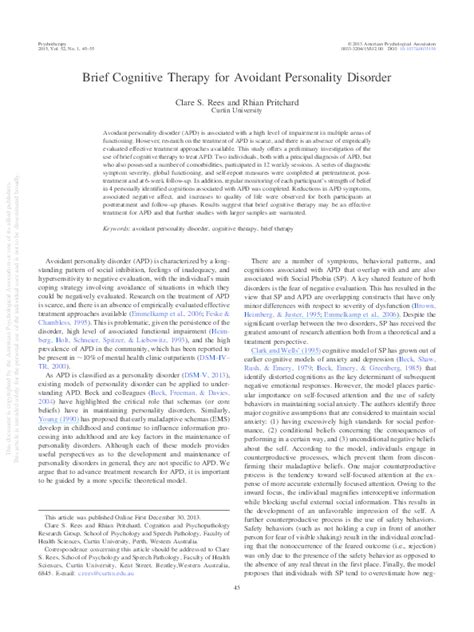 Read Online Cognitive Therapy of An Avoidant Personality Reader Internet Archive